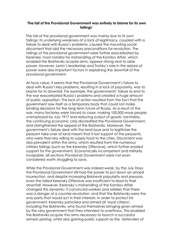 Russian Revolution Essay Question - A level History